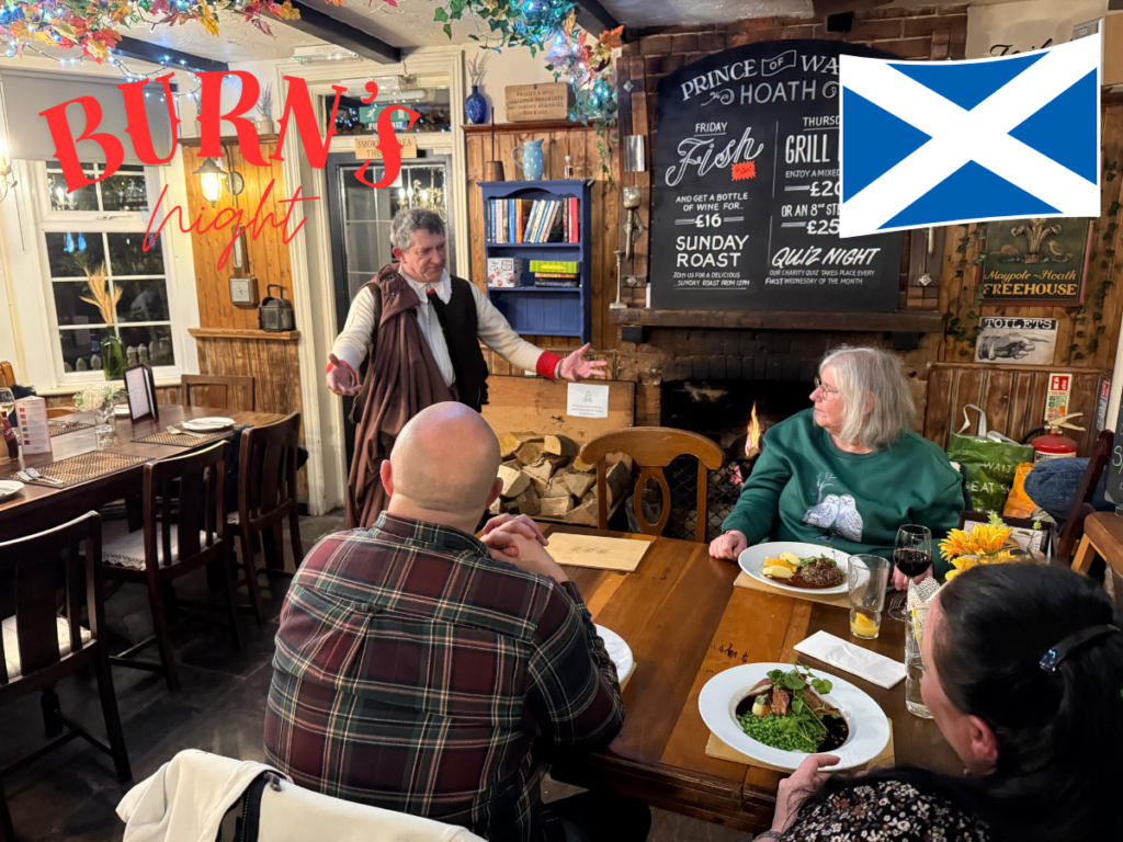 A look back at our unforgettable Burns Night at The Prince of Wales, Hoath, with traditional poetry, the ceremonial address to the haggis, fine whisky and special guest bard Steve Morris in full Highland dress.